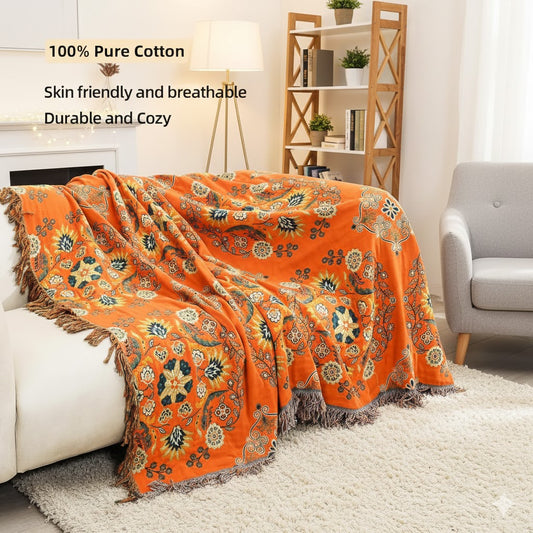 Boho Spring Throw Blanket for Bed Couch, 100% Bohemian Cotton