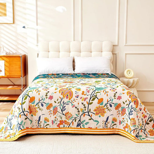 Reversible Boho Cotton Throw Blanket for Sofa & Bed, Colorful Flower Design