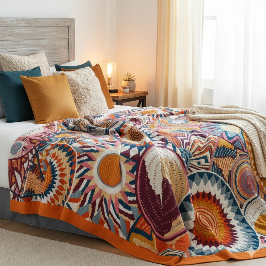Boho Spring Throw Blanket for Bed Couch, 100% Bohemian Cotton